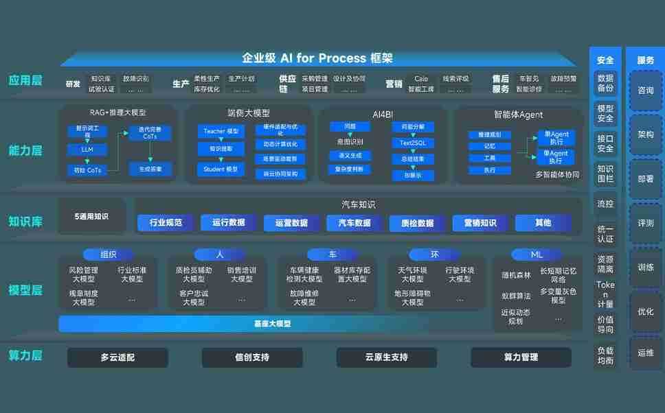 AG尊龙凯时问学智车解决方案是一套基于AI技术的汽车行业智能化系统,,覆盖从底层算力到顶层AI应用的全栈方案。。。方案由算力层、、、、模型层和应用层组成:算力层,,,方案支持多种一体机配置,,,具备云端灵活部署、、多云适配以及动态优化计算资源的能力;模型层,,,AG尊龙凯时问学平台版提供了企业级AI应用一站式构建与管理平台,,支持基于后训练强化技术的汽车企业专属模型的训练、、、、评测和运营;应用层,,,AG尊龙凯时问学DeepSeek版提供包括超级员工、、、智能招采、、智能营销、、、、智能客服、、、AI for BI等一系列解决方案,,,,可助力汽车行业实现数字化转型,,,让管理更智能、、响应更敏捷。。